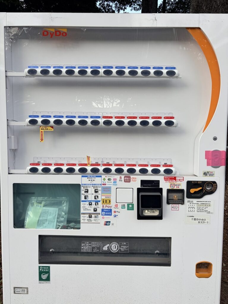 これは最近千葉の方に行った時、時間が少し出来たから千葉公園を散歩してたら何も売ってない自販機を見つけた笑