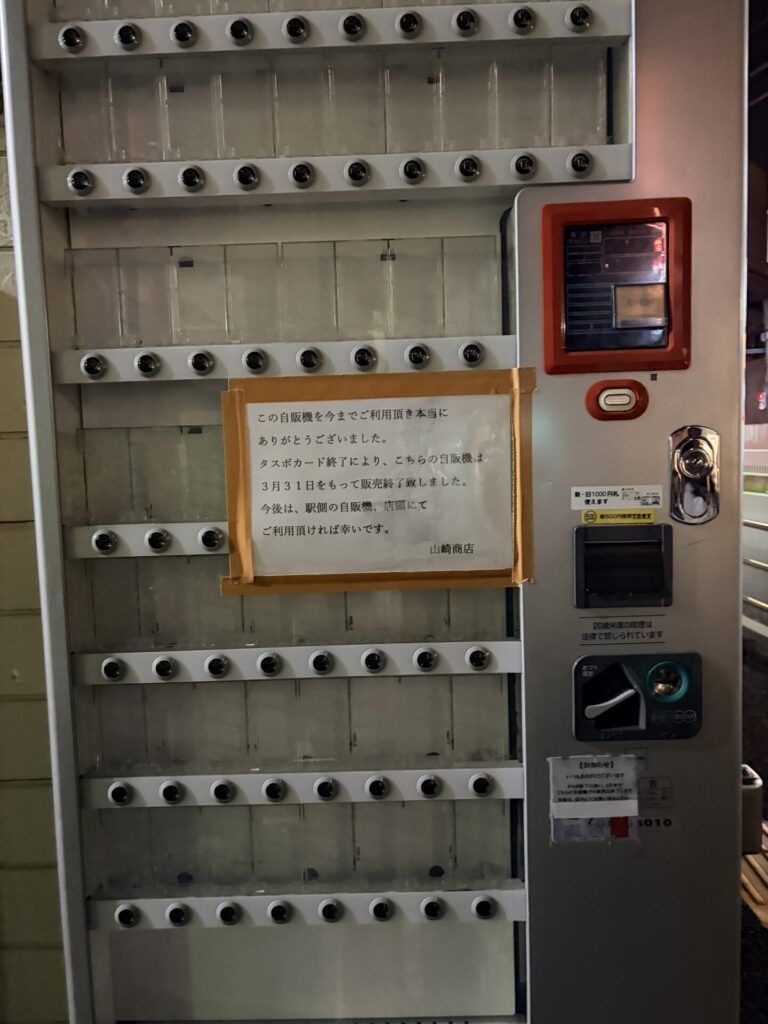 これは場所忘れたけどなんか空の自販機あれば撮るようにしてるから、なぜか写真フォルダが変な写真でいっぱいになってる、、、